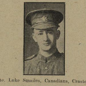 One of two sons lost: see, also, Private Robert Smailes (Regimental service #172001; Canadian Motor Machine Gun Brigade, Eaton's Machine Gun Battery; Died 7 October 1916).