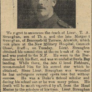 Son of Thomas & the late Margaret Straughan, of 32, Upper Howick Street, Alnwick, Northumberland.