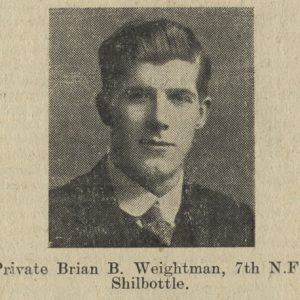 Born October 1891, son of John & Jane McGee Weightman & christened at Shilbottle Church, Northumberland.