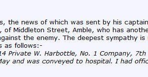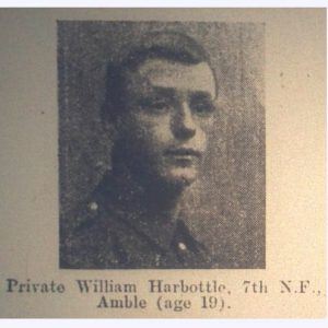 Son of Thomas & Elizabeth Harbottle, of 20, Middleton Street, Amble, Northumberland.